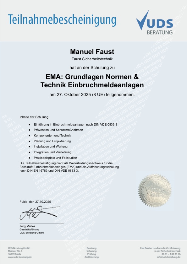 Um unseren Kunden stets moderne, normgerechte und zuverlässige Lösungen bieten zu können, nehmen wir regelmäßig an Schulungen und Weiterbildungen teil.